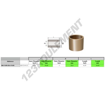 La Bague Bronze connue sous la référence BAI19.05-25.40-19.05 Générique possède un diamètre intérieur de 19.05 mm, un diamètre extérieur de 25.4 mm et une longueur de 19.05 mm. Elle est fabriquée en .