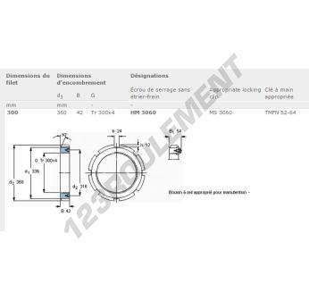 Cet écrou HM3060-SKF possède un diamètre intérieur de 300mm, un diamètre extérieur de 360mm et une épaisseur de 42mm.