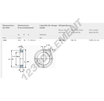 Cet écrou HM56T-SKF possède un diamètre intérieur de 280mm, un diamètre extérieur de 350mm et une épaisseur de 38mm.