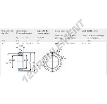 Cet écrou KMT17-SKF possède un diamètre intérieur de 85mm, un diamètre extérieur de 110mm et une épaisseur de 32mm.
