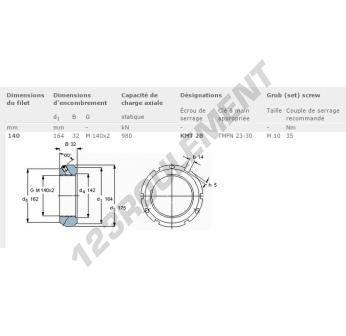 Cet écrou KMT28-SKF possède un diamètre intérieur de 140mm, un diamètre extérieur de 164mm et une épaisseur de 32mm.