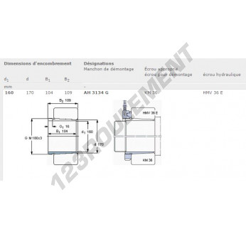 Le Manchon, connu sous la référence AH3134G-SKF SKF, possède un diamètre intérieur de 160 mm, un diamètre extérieur de 170 mm et une épaisseur de 104 mm.