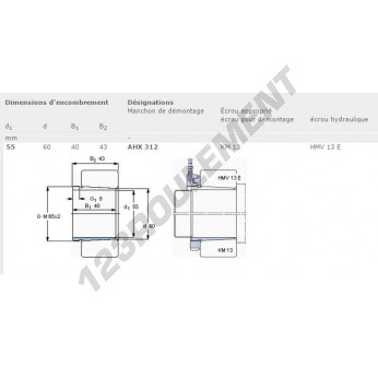 Le Manchon, connu sous la référence AHX312-SKF SKF, possède un diamètre intérieur de 55 mm, un diamètre extérieur de 60 mm et une épaisseur de 40 mm.