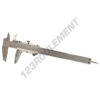 Pied à coulisse permettant la mesure de de 0 à 150mm avec résolution 1/20mm. Dispose également d'une jauge de profondeur et d'une molette de verrouillage.