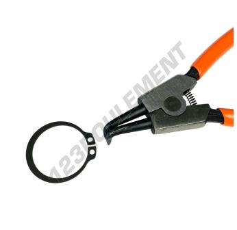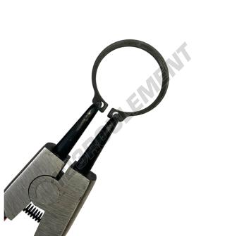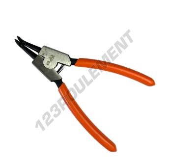 Pince courbée pour circlips extérieurs fabriquée en acier.