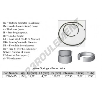 Ressort Ondulé (fil Rond) WSRW-107.95-5-2.67 Générique, Diamètre intérieur mm, Diamètre extérieur mm, Epaisseur mm, matière