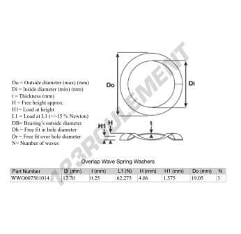 La Rondelle Ondulée à Chevauchement de référence WWO007501014 possède un diamètre intérieur de 12.7 mm et une épaisseur de 0.25 mm. Elle est fabriquée en matière ACIER.