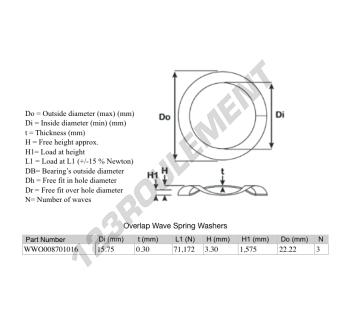 La Rondelle Ondulée à Chevauchement de référence WWO008701016 possède un diamètre intérieur de 15.75 mm et une épaisseur de 0.3 mm. Elle est fabriquée en matière ACIER.