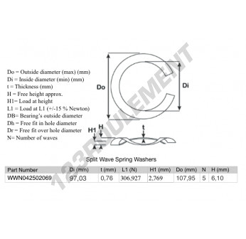 La Rondelle Ondulée Fendue de référence SWSW-107.95-97.03-0.76-5 possède un diamètre intérieur de 97.03 mm et une épaisseur de 0.76 mm. Elle est fabriquée en matière ACIER.