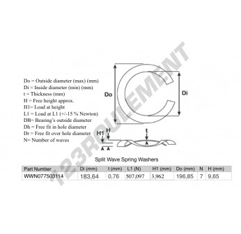 La Rondelle Ondulée Fendue de référence SWSW-196.85-183.64-0.76-7 possède un diamètre intérieur de 183.64 mm et une épaisseur de 0.76 mm. Elle est fabriquée en matière ACIER.