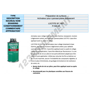 Le Loctite SF 7457 500ML est un activateur de haute performance de 500ML, conçu pour améliorer l'adhérence des adhésifs Loctite sur diverses surfaces et accélérer leur prise pour des applications industrielles.