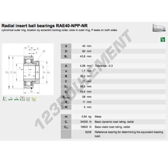 L'Accessoire De Palier connu sous la référence RAE40-XL-NPP-NR-INA INA possède un diamètre intérieur de 40 mm, un diamètre extérieur de 80 mm et une épaisseur de 43.7 mm. Il est fabriqué en .