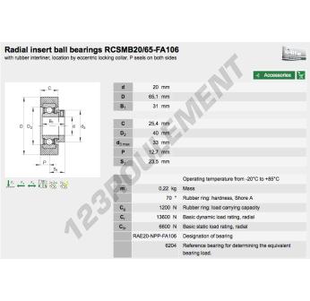 L'Accessoire De Palier connu sous la référence RCSMB20-65-XL-FA106-INA INA possède un diamètre intérieur de 20 mm, un diamètre extérieur de 65.1 mm et une épaisseur de 31 mm. Il est fabriqué en .