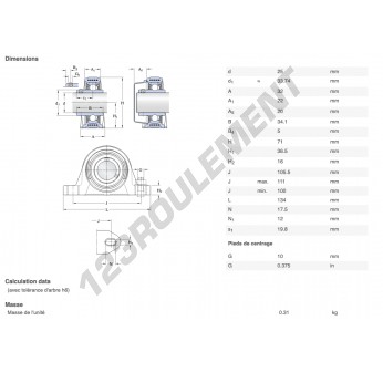 L'Accessoire De Palier connu sous la référence SYK25-TF-SKF SKF possède un diamètre intérieur de 25 mm, un diamètre extérieur de 134 mm et une épaisseur de 32 mm. Il est fabriqué en .