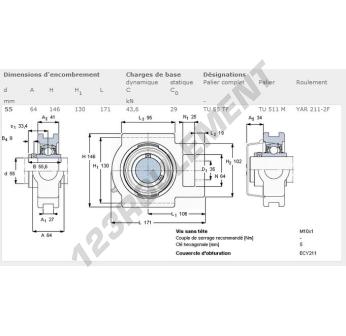 Le Palier - 1 Fixation connu sous la référence TU55-TF-SKF SKF possède un diamètre d'alésage de 55 mm. Cette référence est fabriquée en fonte et le type de serrage est par vis de blocage.
