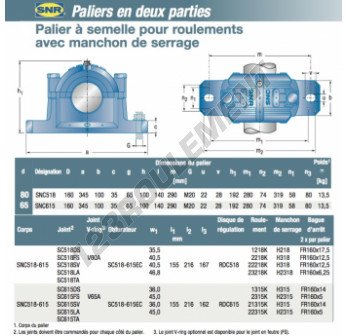 Le Palier - 2 Fixations connu sous la référence SNC518-615-SNR SNR possède un diamètre d'alésage de 80 mm et un entraxe de fixation de 290 mm. Cette référence est fabriquée en fonte et le type de serrage se fait par Sans blocage.