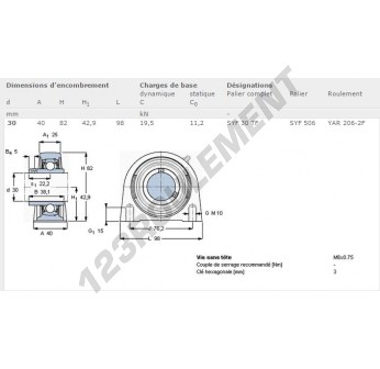 Le Palier - 2 Fixations connu sous la référence SYF30TF-SKF SKF possède un diamètre d'alésage de 30 mm et un entraxe de fixation de 76.2 mm. Cette référence est fabriquée en fonte et le type de serrage se fait par vis de blocage.