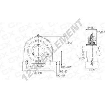 Le Palier - 2 Fixations connu sous la référence UCPA213 Générique possède un diamètre d'alésage de 65 mm et un entraxe de fixation de 124 mm. Cette référence est fabriquée en fonte et le type de serrage se fait par vis de blocage.
