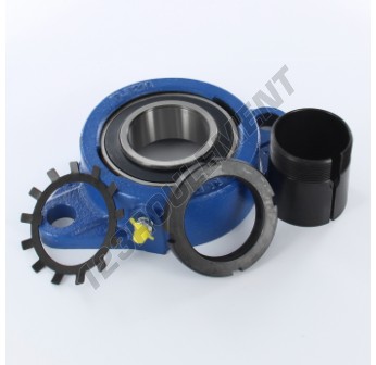 Le Palier - 2 Fixations connu sous la référence UKFLE210H-SNR SNR possède un diamètre d'alésage de 45 mm et un entraxe de fixation de 190 mm. Cette référence est fabriquée en fonte et le type de serrage se fait par Manchon de serrage.