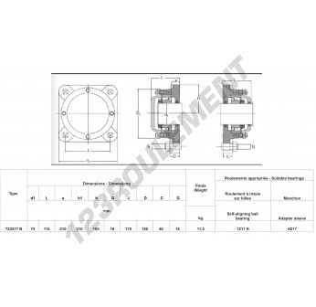 Le Palier - 4 Fixations connu sous la référence 722517-B-1217-K de la marque Générique possède un diamètre d'alésage de 75 mm et un entraxe de fixation de 170 mm. Cette référence est fabriquée en fonte et le type de serrage se fait par Manchon de serrage.