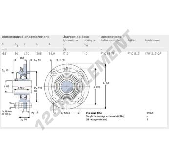 Le Palier - 4 Fixations connu sous la référence FYC65-TF-SKF de la marque SKF possède un diamètre d'alésage de 65 mm et un entraxe de fixation de 120.2 mm. Cette référence est fabriquée en fonte et le type de serrage se fait par vis de blocage.