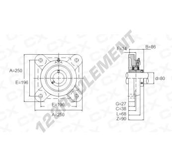 Le Palier - 4 Fixations connu sous la référence UCF316 de la marque Générique possède un diamètre d'alésage de 80 mm et un entraxe de fixation de 196 mm. Cette référence est fabriquée en fonte et le type de serrage se fait par vis de blocage.