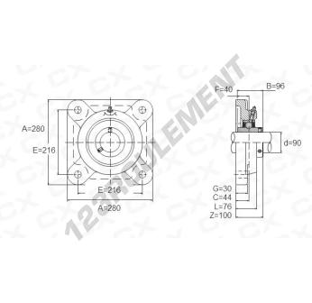 Le Palier - 4 Fixations connu sous la référence UCF318 de la marque Générique possède un diamètre d'alésage de 90 mm et un entraxe de fixation de 216 mm. Cette référence est fabriquée en fonte et le type de serrage se fait par vis de blocage.