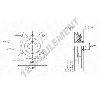 Le Palier - 4 Fixations connu sous la référence UCFX15 de la marque Générique possède un diamètre d'alésage de 75 mm et un entraxe de fixation de 152 mm. Cette référence est fabriquée en fonte et le type de serrage se fait par vis de blocage.