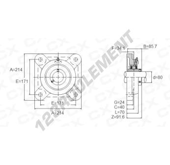 Le Palier - 4 Fixations connu sous la référence UCFX16 de la marque Générique possède un diamètre d'alésage de 80 mm et un entraxe de fixation de 171 mm. Cette référence est fabriquée en fonte et le type de serrage se fait par vis de blocage.