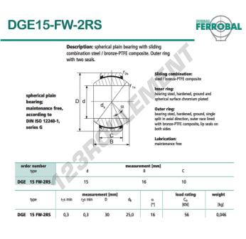 La Rotule Geew connue sous la référence DGE15-FW-2RS-DURBAL, de la marque DURBAL possède un diamètre intérieur de 15mm, un diamètre extérieur de 30mm et une épaisseur de 10mm.