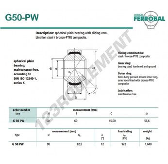 La Rotule Geew connue sous la référence G50-PW-DURBAL, de la marque DURBAL possède un diamètre intérieur de 50mm, un diamètre extérieur de 90mm et une épaisseur de 45mm.