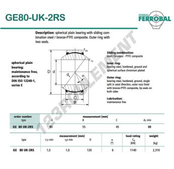 La Rotule Geew connue sous la référence GE80-UK-2RS-DURBAL, de la marque DURBAL possède un diamètre intérieur de 80mm, un diamètre extérieur de 120mm et une épaisseur de 45mm.