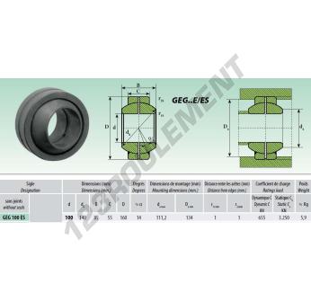 La Rotule Geg connue sous la référence GEG100-ES Générique possède un diamètre intérieur de 100 mm, un diamètre extérieur de 160 mm et une épaisseur de 85 mm.