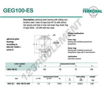 La Rotule Geg connue sous la référence GEG100-ES-DURBAL DURBAL possède un diamètre intérieur de 100 mm, un diamètre extérieur de 160 mm et une épaisseur de 55 mm.
