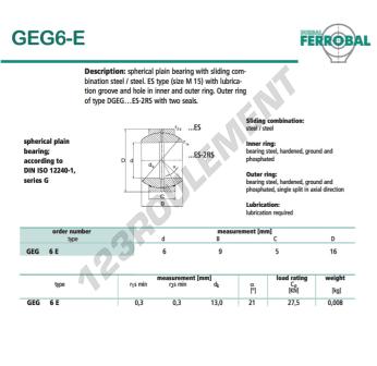 La Rotule Geg connue sous la référence GEG6-E-DURBAL DURBAL possède un diamètre intérieur de 6 mm, un diamètre extérieur de 16 mm et une épaisseur de 5 mm.