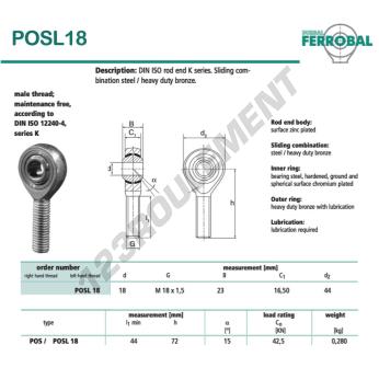 La Rotule Sa connue sous la référence DPOSL18-DURBAL, de la marque DURBAL possède un pas de vis de et un Filetage à gauche, un diamètre intérieur de 18mm, un diamètre extérieur de 44mm et une épaisseur de 23mm.