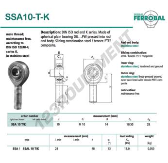 La Rotule Sa connue sous la référence SSA10-T-K-DURBAL, de la marque DURBAL possède un pas de vis de et un Filetage à droite, un diamètre intérieur de 10mm, un diamètre extérieur de 28mm et une épaisseur de 14mm.