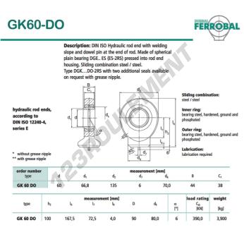 La Rotule Tpn connue sous la référence GK60-DO-DURBAL de la marque DURBAL possède un diamètre intérieur de 60mm, un diamètre extérieur de 135mm et une épaisseur de 44mm.