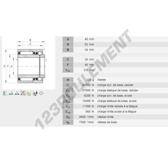 Le Roulement à Aiguilles, connu sous la référence NKIB5908-INA, de la marque INA, possède un diamètre intérieur de 40mm, un diamètre extérieur de 62mm et une épaisseur de 34mm.