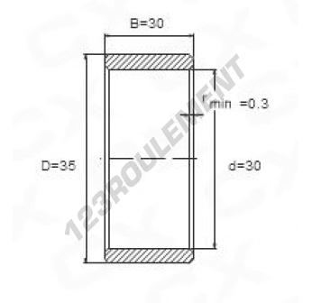 La Bague Intérieure connue sous la référence IR30X35X30 de la marque Générique possède un diamètre intérieur de 30 mm, un diamètre extérieur de 35 mm et une longueur de 30 mm.