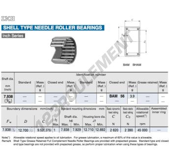 La Douille à Aiguilles, connue sous la référence BAM56-IKO, de la marque IKO, possède un diamètre intérieur de 7.94 mm, un diamètre extérieur de 12.7 mm et une épaisseur de 9.52 mm.