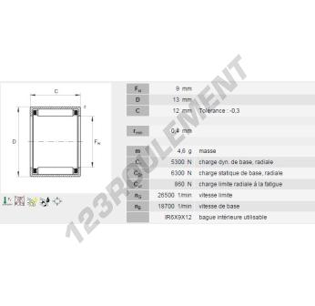 La Douille à Aiguilles, connue sous la référence HK0912-B-INA, de la marque INA, possède un diamètre intérieur de 9 mm, un diamètre extérieur de 13 mm et une épaisseur de 12 mm.