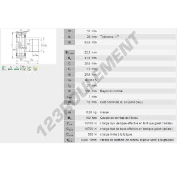 Le Galet De Came Avec Axe, connu sous la référence KR5204-2RS-INA, de la marque INA, possède un diamètre intérieur de 20mm, un diamètre extérieur de 52mm et une épaisseur de 63.6mm.