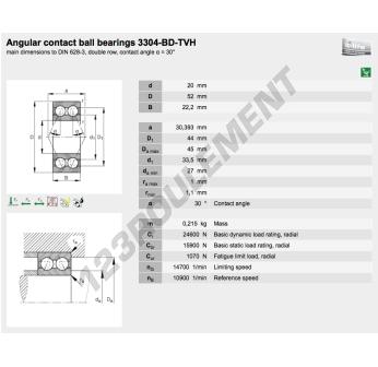 Le Roulement à Billes, connu sous la référence 3304-BD-TVH-FAG, de la marque FAG, possède un diamètre intérieur de 20mm, un diamètre extérieur de 52mm et une épaisseur de 22.2mm.
