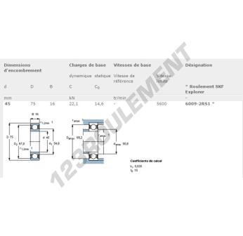 Le Roulement à Billes, connu sous la référence 6009-2RS1-SKF, de la marque SKF, possède un diamètre intérieur de 45mm, un diamètre extérieur de 75mm et une épaisseur de 16mm.