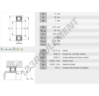 Le Roulement à Billes, connu sous la référence 61903-ZZ-INA, de la marque INA, possède un diamètre intérieur de 17mm, un diamètre extérieur de 30mm et une épaisseur de 7mm.