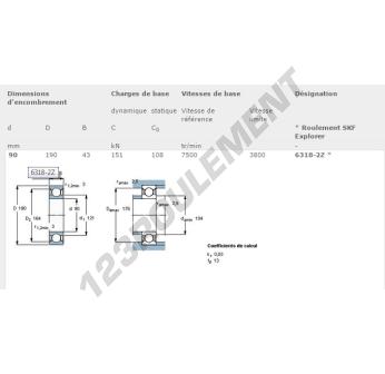 Le Roulement à Billes, connu sous la référence 6318-ZZ-SKF, de la marque SKF, possède un diamètre intérieur de 90mm, un diamètre extérieur de 190mm et une épaisseur de 43mm.