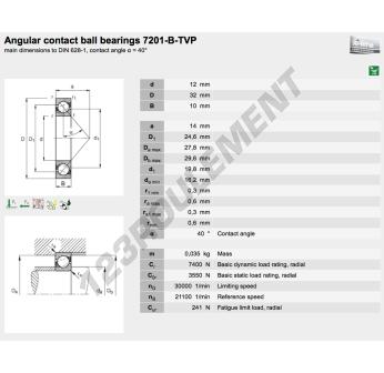 Le Roulement à Billes, connu sous la référence 7201-B-XL-TVP-FAG, de la marque FAG, possède un diamètre intérieur de 12mm, un diamètre extérieur de 32mm et une épaisseur de 10mm.