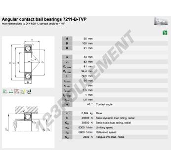 Le Roulement à Billes, connu sous la référence 7211-B-TVP-FAG, de la marque FAG, possède un diamètre intérieur de 55mm, un diamètre extérieur de 100mm et une épaisseur de 21mm.
