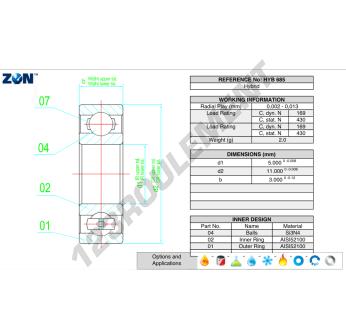 Le Roulement à Billes, connu sous la référence HYB-685-ZEN, de la marque ZEN, possède un diamètre intérieur de 5mm, un diamètre extérieur de 11mm et une épaisseur de 3mm.